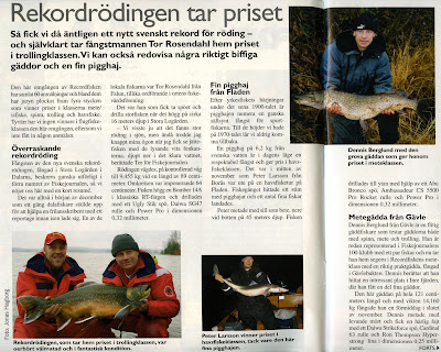 Men så under ett svinkallt ismetepass i januari ringer Palle Sköldblom upp mig och vill tala om att jag är vinnare av Omgångens Fisk och även tar hem priset i meteklassen för Recordfisken!
