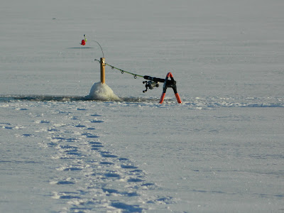 Isfiske är ganska enkelt egentligen, det viktigaste är att presentera betet och låta det göra reklam för sig under en lång tid. Finns gäddan där hugger hon förr eller senare.