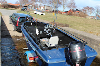 Igår styrde jag och Kristian "josen" Johansson kosan mot Blekinge skärgård. På grund av det kalla vädret så åkte vi inte okristligt tidigt. Kl 07:00 var vi framme vid rampen. Kvicksilvret visade minus 4 grader och det var kalla men hanterbara vindar. Skärgården visade sig från sin bästa sida för det var vackert på väg ut till första fiskeplatsen. Solen lyste och värmde bra där vi hittade lä. Det var 3,9 grader i yttemp så vi valde att fiska av grundare parti med sandfläckar som gäddorna kunde stå och värma sig på. Det kalla vädret satte oss verkligen på prov. Händerna tog mycket stryk och rullar och spöringar isade igen efter varje kast. Det dröjde dock inte så länge förrän josen fått första gäddan ingen av oss ville väl igentligen dra ner händerna i vattnet för att plocka upp gäddan därför lyfte jag bara gäddan för ett snabbt kort innan den fick gå tillbaka.