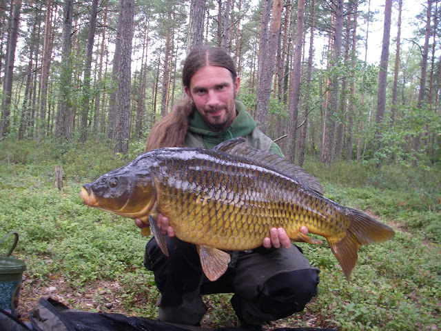 Jaja, helgen som var kom jag till mörtsjön för att möta upp Janne och hans trevliga donna Lizen med tillhörande jycke Åsa, Janne kom på torsdagen och hade redan hunnit bränna en karp så han var lite småtjurig så jag fick klappa han på axeln och visa lite medkänsla. Vi fiskade Norra och kamratlig som Janne är fick jag chansen att fiska där jag velat ett bra tag, vilket gjorde att jag vart lite peppad! Jag hade i detta skede laborerat i frustration över alla blankpass så jag kände att nu går jag back to basic! en snowman på en vanlig rigg 20+15mm och inget blyhagel eller annat tjafs denna gång, ut med grejerna och luta sig tillbaka med lite grillat och en kall! mörkret kommer och tröttheten därpå så jag sitter och njuter en stund till tills jag känner mig färdig för sängen..