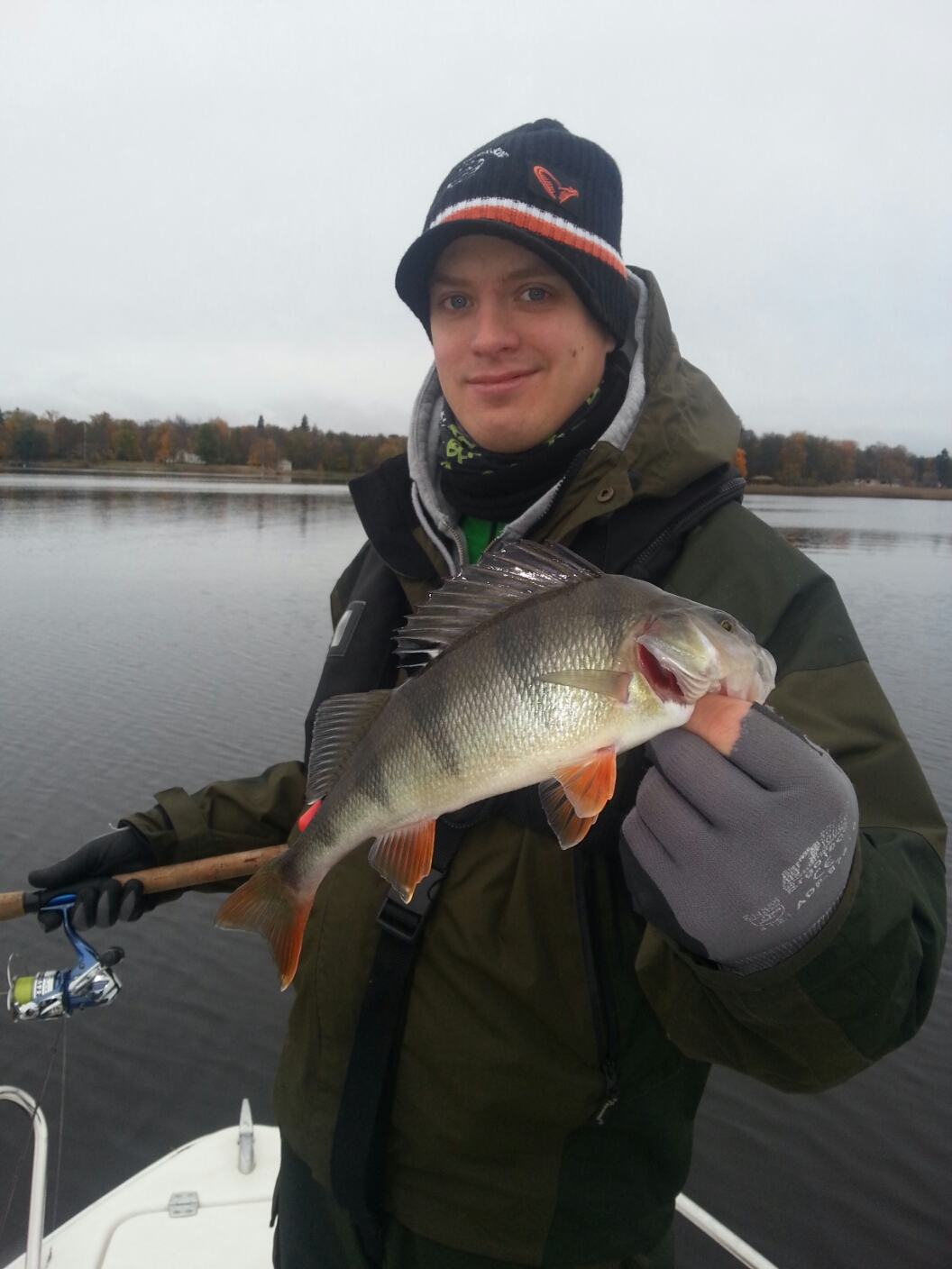 Idag var det dags för fiske med Nicklas och Andreas igen. Klockan 7:30 stod vi uppställda på bryggan och snart satt vi i båten och puttrade ut från hamnen. Främst gädda stod på schemat och vi började nöta av en kant. Inget tecken på liv. En förflyttning senare kände jag ett stadigt hugg och satte krokarna med ett distinkt mothugg. Kort därefter hade vi en riktigt fin stock i båten. Av all adrenalin om pumpade efter drillen glömde vi att ta både vikt och längd på den innan den fick simma tillbaka, men den va fet vill jag lova.