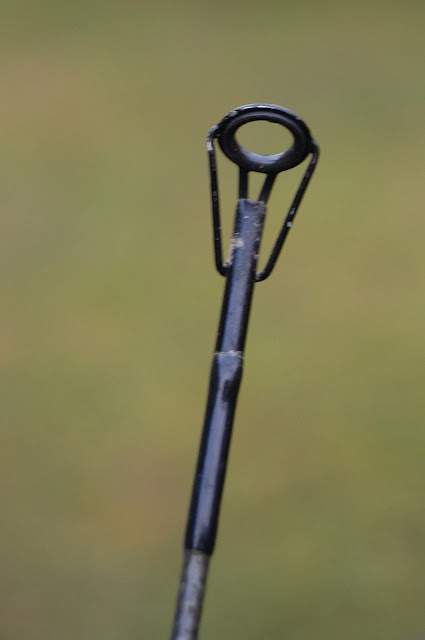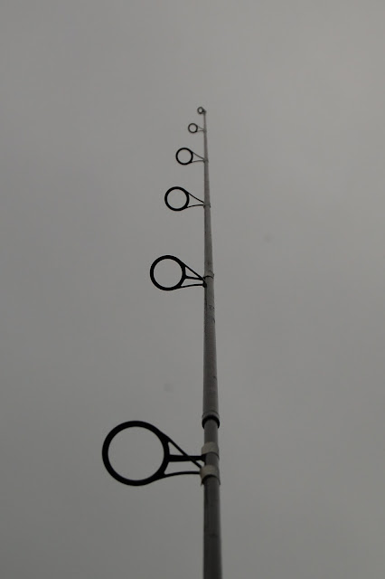 Igår rev jag ner ringarna på mitt gamla Sportexspö, slipade och lackade, där de gamla ringarna hade suttit och det blev väldigt bra.Spöet är ett Sportex Kevlar 12 fot och med en distinkt 2 ½ lb testkurva och mitt mål är att ha det för kontrollerfiske efter karp och gräskarp, samt annat roligt, som håller sig på avstånd från mig.