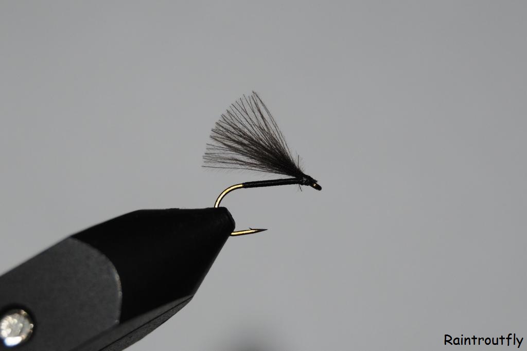 [FONT=Arial]F-fly är en imitation av en nattslända men kan också imitera många andra insekter som Ex. Ett litet fjädermygg som hänger ner djupt i ytfilmen. En F-fly kan locka de allra kräsnaste regnbågarna till hugg en varm sommar dag då man redan gått igenom alla tänkbara torrflugor i asken och letar efter den rätta. F-fly:n brukar jag binda i storlekarna 14-20 men valde storlek 14 nu för att förtydliggöra bind beskrivningen lite extra. En F-fly i storlek 18-20 är nog den flugan som bäst kan imitera de allra minsta insekterna som fjädermygg.[/FONT]