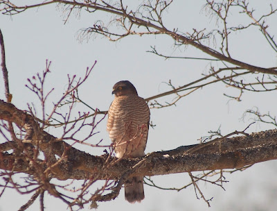 Igår var det ett satans liv i min trädgård, efter att jag hade matad små fåglarna och jag undrade vad som hände. Jag skulle snart få se grunden till detta liv och det var en Sparvhök, som jagade runt huset.