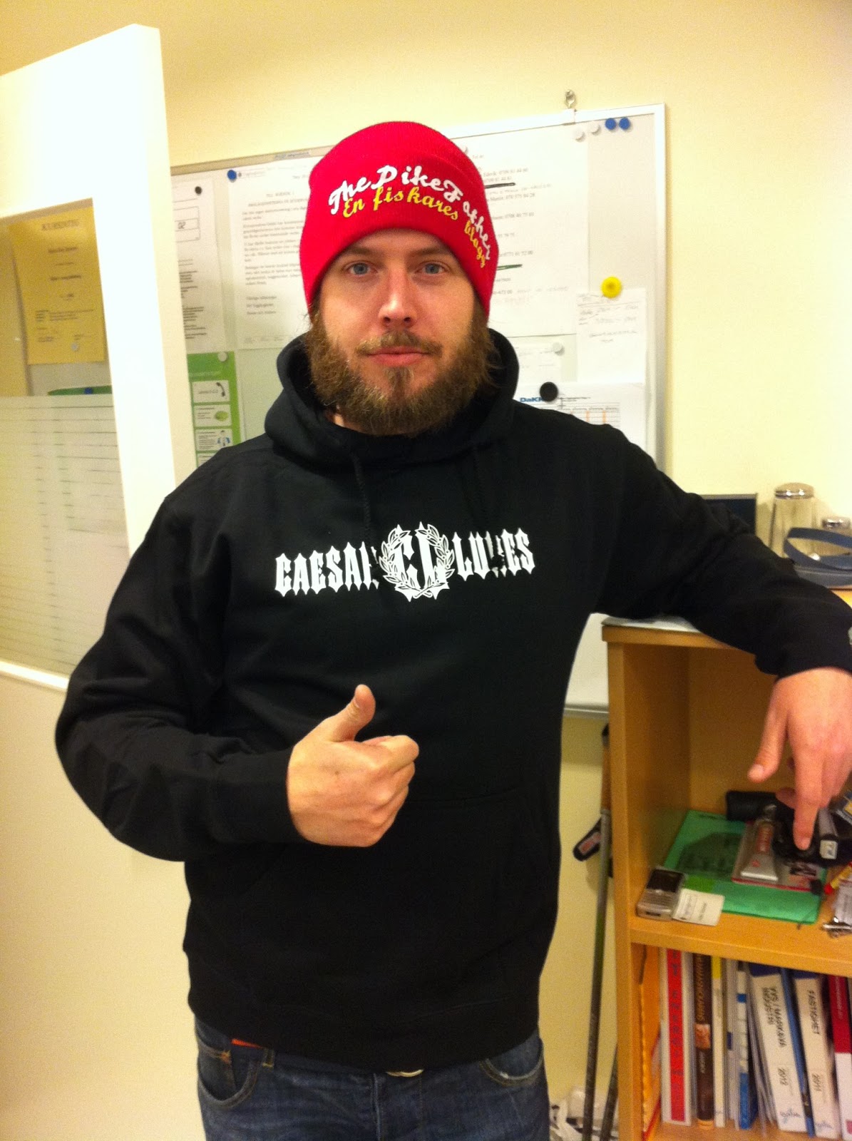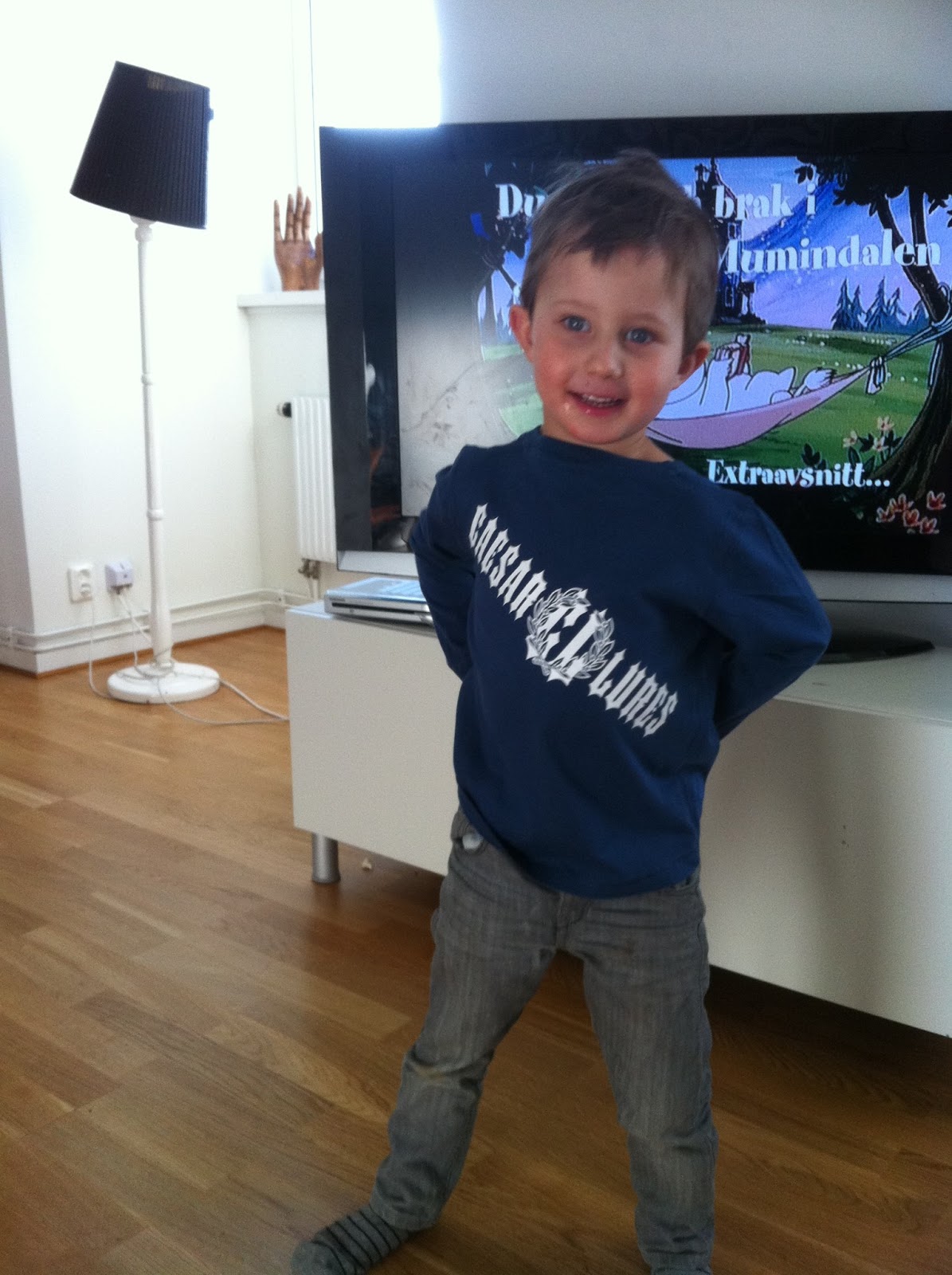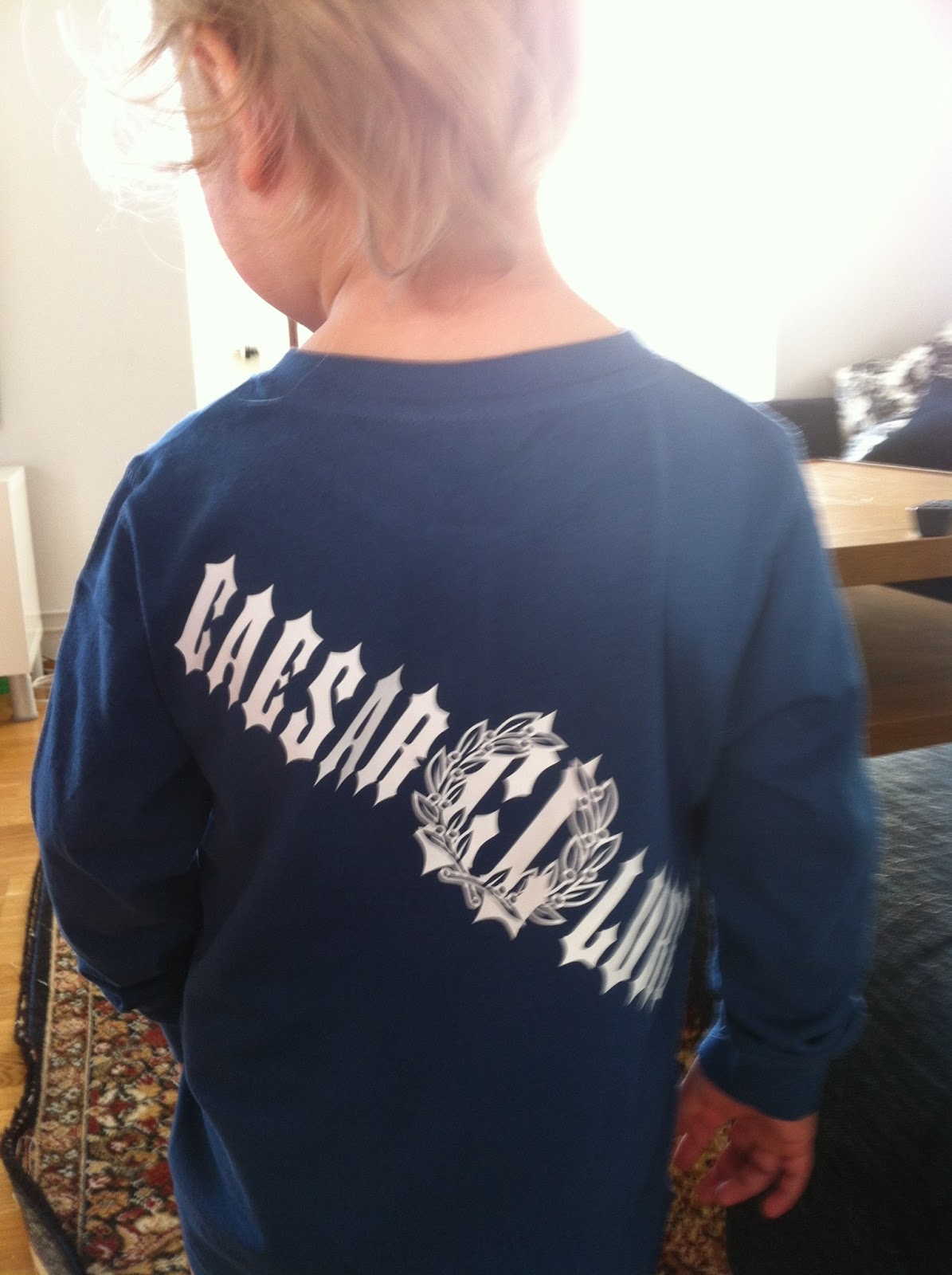 Caesar i egen hög person (blev tvungen att ha trycket snett pga liten tröja