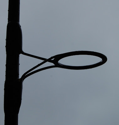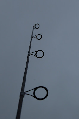 Här ser man att det är enbenta ringar på topp delen, förutom den nedersta 40 mm ringen, som är tvåbent. Man har enbenta ringar för att inte göra spöet för styvt och för att få fram lite bättre drillningsegenskaper.