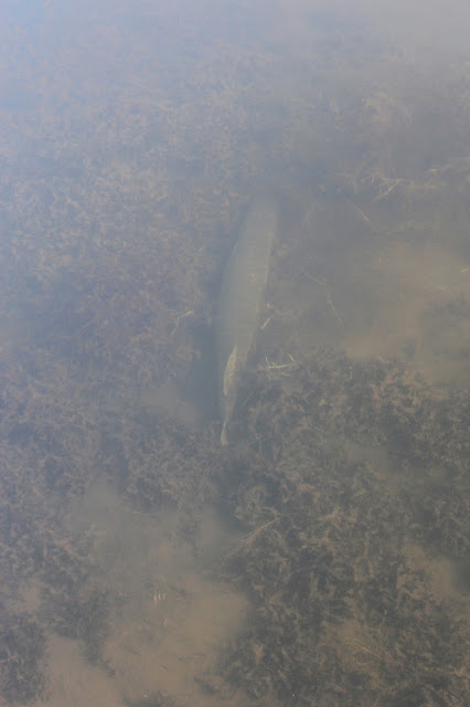 Jag fick helt enkelt köra med jerkpåken hela dagen istället. Jag testade dock mina jiggar med Andreas haspelutrustning och shadarna gick riktig bra i vattnet. Synd bara att det var så jäkla lite vatten. Jag har aldrig fiskat i blekinge med när det varit så lite vatten. Det var minst en meter grundare än normalt. Alla sköna vikar var tokgrunda och dte ar väldigt svårt att hitta större fisk. Det fina vädret gjorde inte det lättare. Andra viken vi testade fick vi varsin 2,5 kilos snipa och lite hugg. Efter det blev slemgurkorna bara mindre och mindre. Många följen blev det men det kändes som alla gäddorna stod nerborrade i tången och leran och ville inte alls hugga om man inte placerade betet precis framför munnen på dom. Det var ändå otroligt skönt att komma ut och fiska och vi hade en otroligt trevlig dag på sjön.