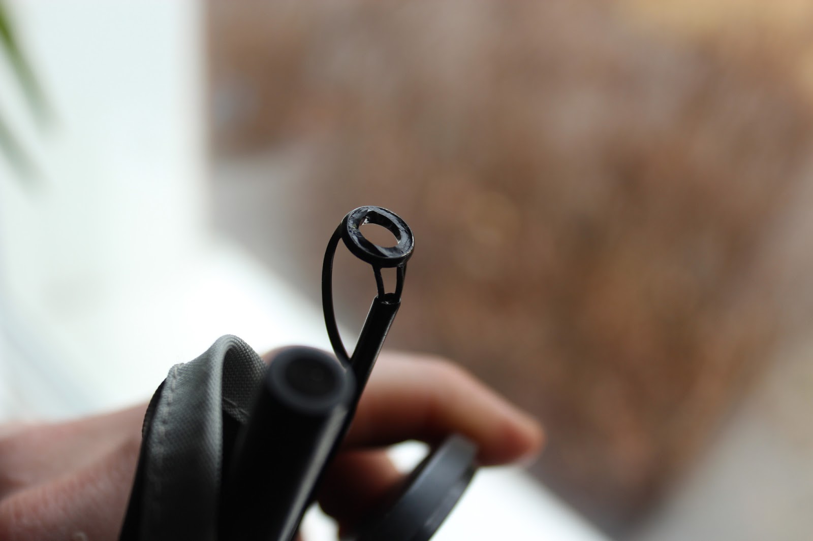 Efter detta tacklade vi upp våre spöt. Jag packar upp mitt nya Roots spö och trär linan för första gången igenom. När jag fäster beteslåset i spöt går plötsligt linan av. Genast granskar jag ringarna och ser då att översta keramikringen är helt av. Eftersom den bara är av på utsidan och inte insidan har jag inte märkt något. Spöt har inte varit uppackat sedan jag köpte det pga att jag inte hade fått hem nya rullen än. Nu hoppas jag verkligen att jag får hem ett nytt spö innan tävlingen nästa helg. Förhoppningsvis har Berras ett på lager så jag kan få ett nytt på en gång.