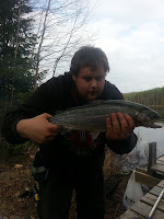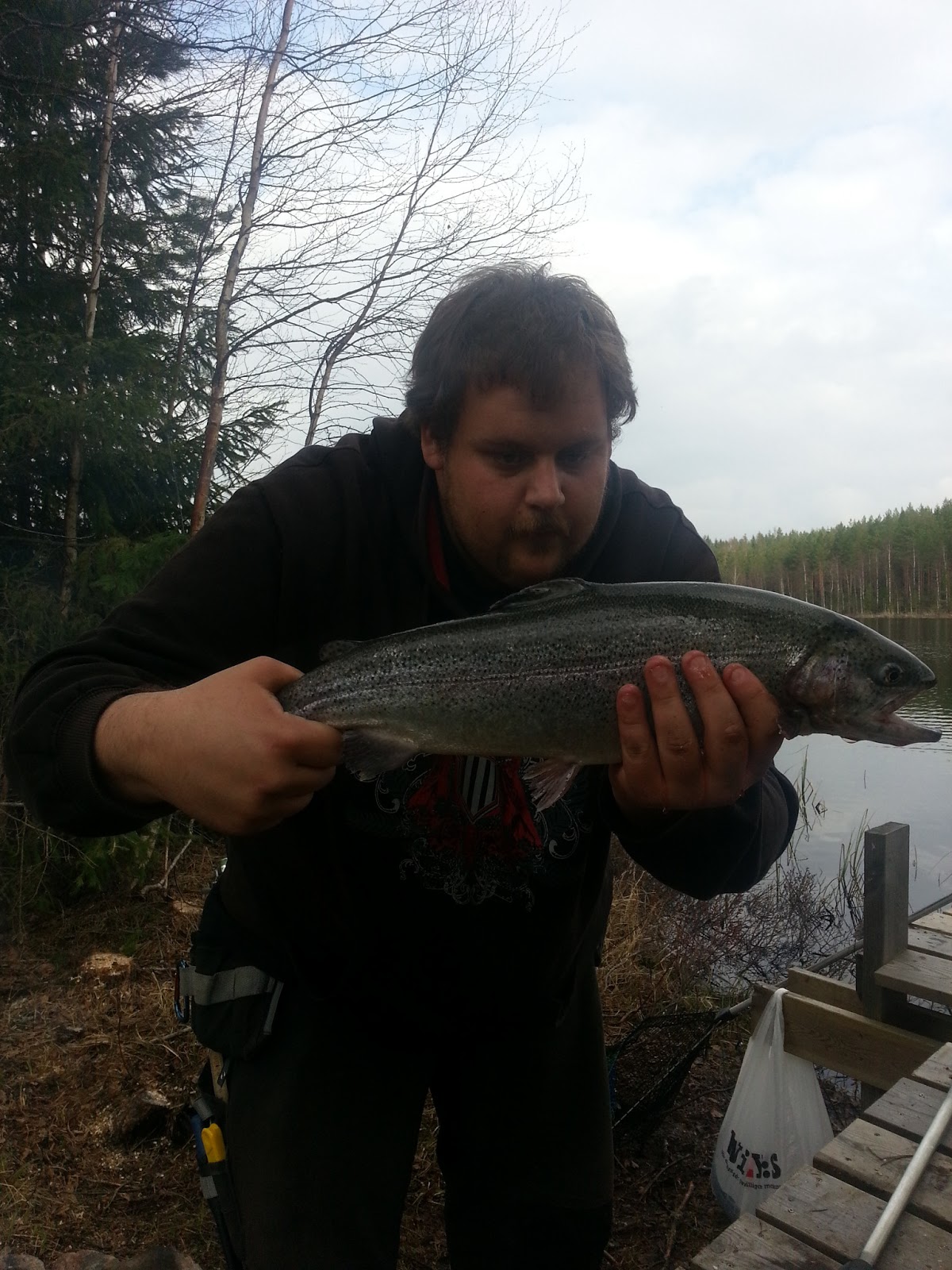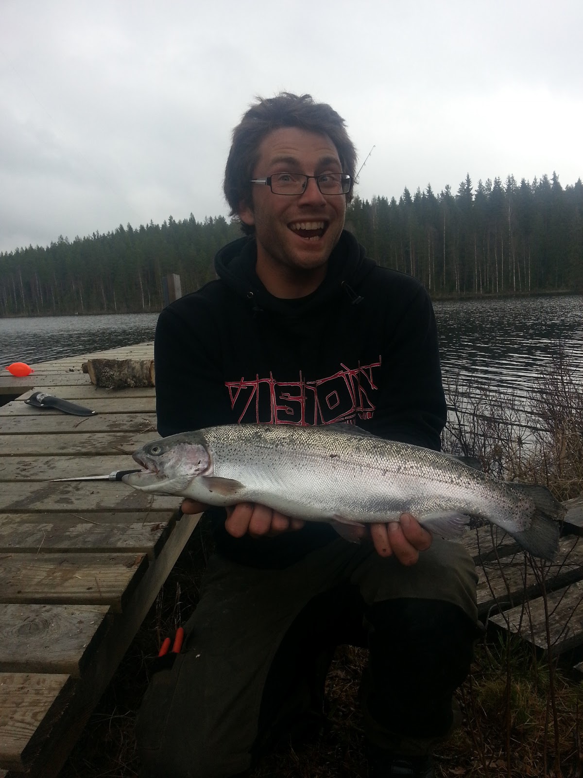 I onsdags kunde inte Simon hålla sig så vi åkte dit för att kika lite vad det var för ställe(Långsjön) på vägen beslutar jag mig för att också fiska så vi löser fiske kort och åker nöjda till sjön hittar en plats och Simon var snabb med grejerna i vattnet, Släpper spöt och ska gå emot campet då hör man rullen bara rusa till som toktoktok. Fisk på grejerna han nog inte hamna på botten!