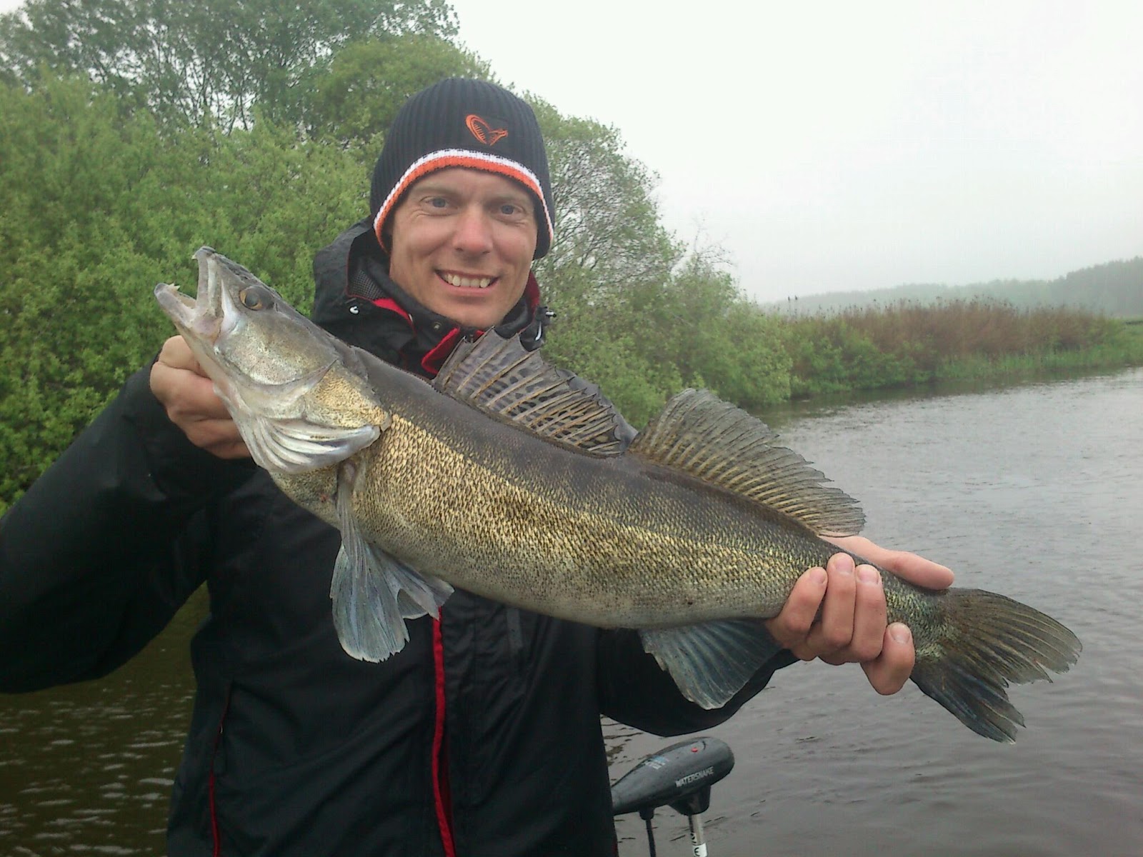 Varför har vi otur med gösvädret? Regn sist också, men vad gör det när det nappar:-) fick denna på exakt 3kg (med kompisens våg) på samma plats som förra veckan, kan det vara samma?:-P jag fick dock nöta ner denna gös innan den fastnade denna gång. Tror också att samma högg nån timme tidigare, för jag fick ett karatehugg så jiggen kom upp som ett knyte och jag såg ett fläskigt eko precis innan på samma plats. Roligt! Han kanske kommer upp nästa vecka igen:-D