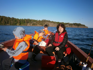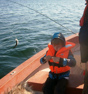 Efter att ha inmundigat en god lunch på restaurangen i hamnen, så sjösattes båten och det bar ut på böljan den blå. Vädret var i det närmsta perfekt med solsken och svag vind, "nya" båten gick som en klocka, vad mer kan man begära. Jo lite fisk...
