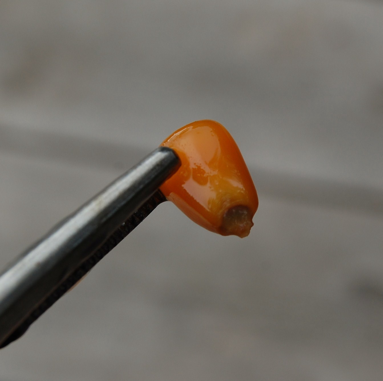 Du kan ha kornen liggandes i flera år i dipp, de är fortfarande hårda och inget du ska mäska med! När du ska montera dem på din hair needle, så stick din needle genom denna sida av kornet, inte genom från den lite mer mjuka sidan, var du ser ett litet vitt spår på kornet.