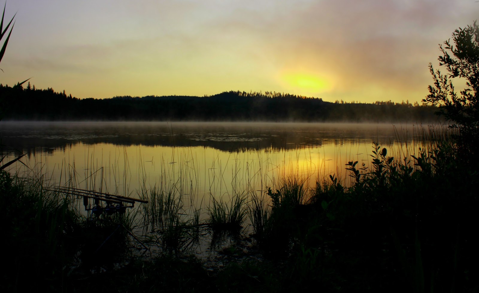 Natten blir lugn, men vid 4.30 drar det iväg i full fart på mittenspöt. Fisken känns betydligt tyngre än fjällisen jag landade kvällen innan. Tyvärr går fisken segrande ur striden då den kliver av efter ett par minuters fight.