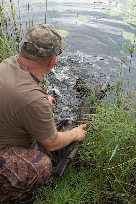 Sista rycket och alla var glada och nöjda, gladast var nog fisken som fick sin frihet. 4 minuter! Det är bra det! I morgon bitti ska jag bara öppna boiliepåsen och lägga den på backen, dem kanske simmar upp och tar för sig? Bara att hålla upp fisken sen för kameran - det känns lite väl bra ibland, men så fungerar bra beten!