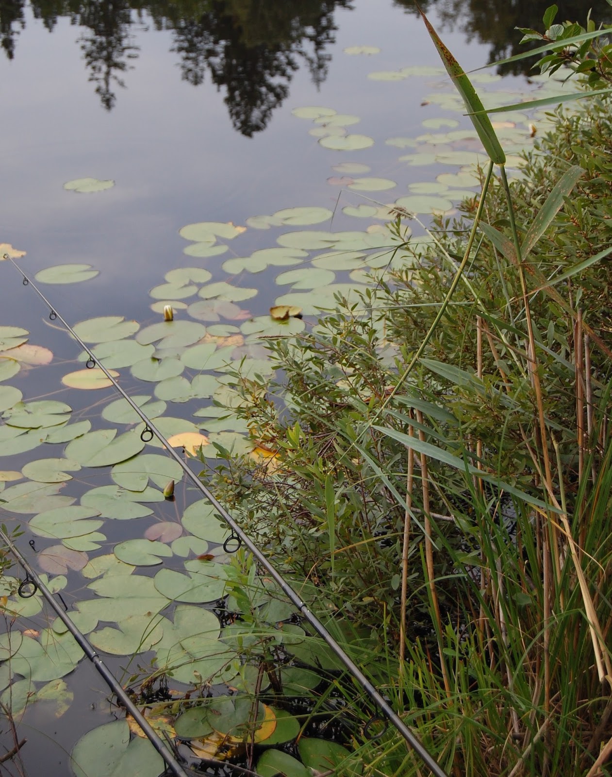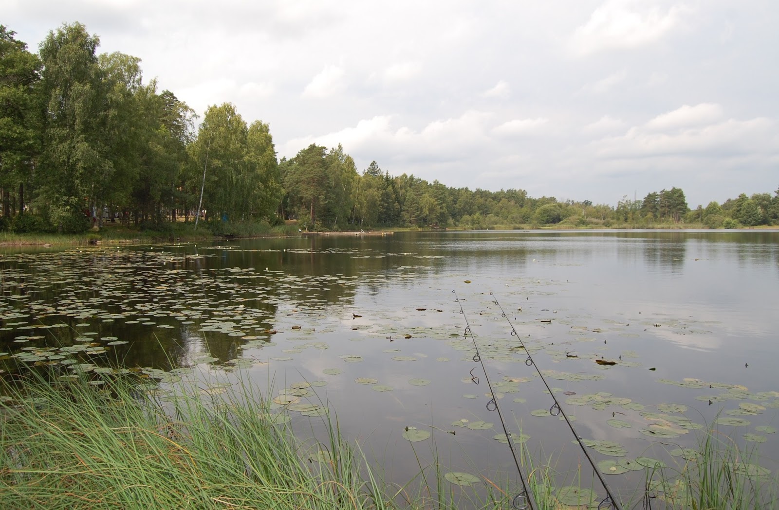 Jag provade vid Grönvägen ett par timmar och jag såg 4 karpar, som lullade runt i ytan mellan alla näckrosorna, men precis när jag skulle ge upp, så kröp det på en 2 kilos spegel och efter den gick cykeln hem fort, kan jag säga!