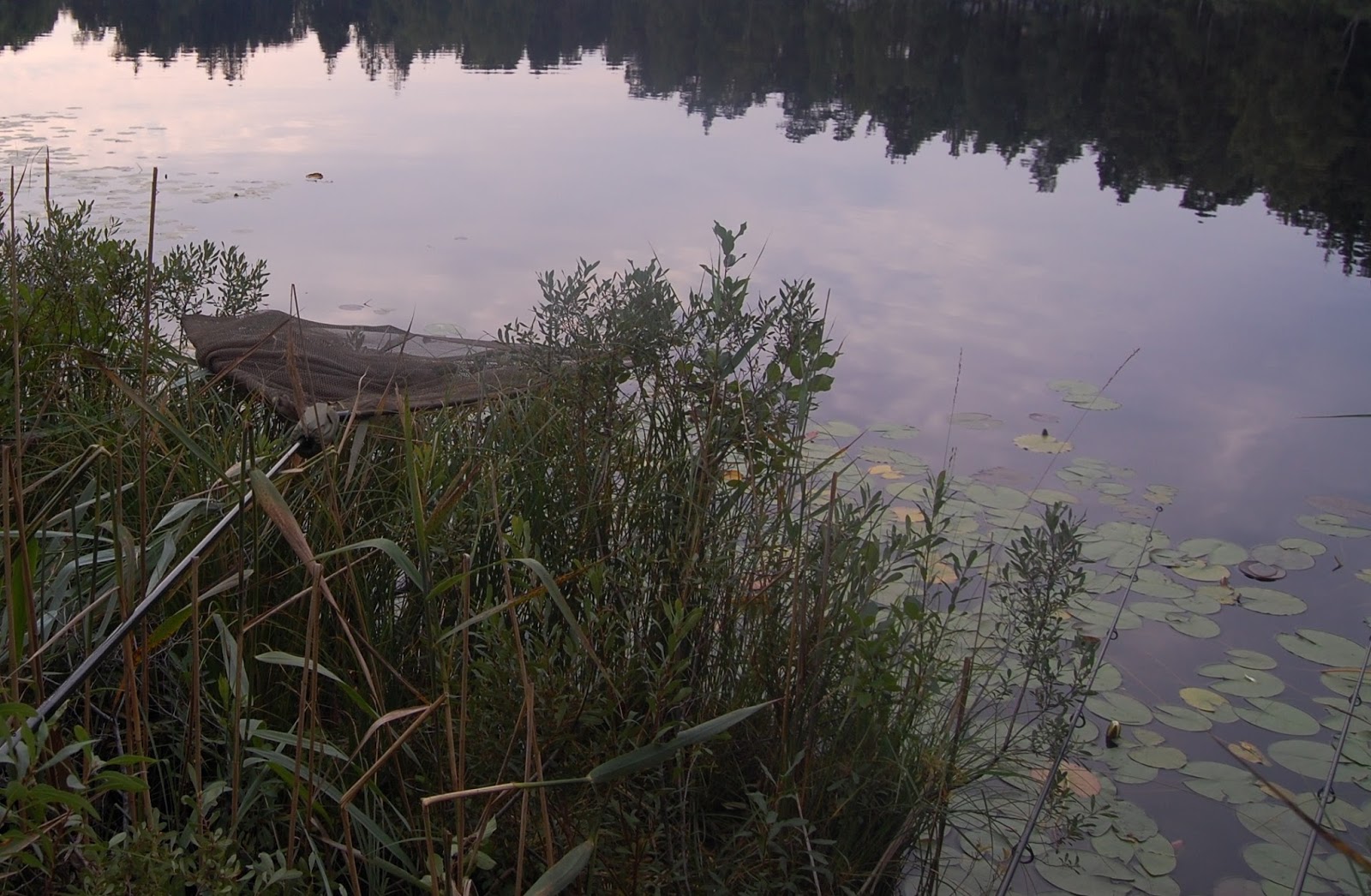 Jag brukar alltid ta fram håven mm först och sen kommer spöna i fall nu att och det blev verkligen och det blev verkligen, en aha upplevelse, men sen var jag vaken och fick rätsida i det trånga swim. Sen fipplade jag med nästa spö och hade inte en tanke på håven och efter max 4 minuter i vattnet, så hittade en karp, min röda degklump och det bar iväg utav bara hel....