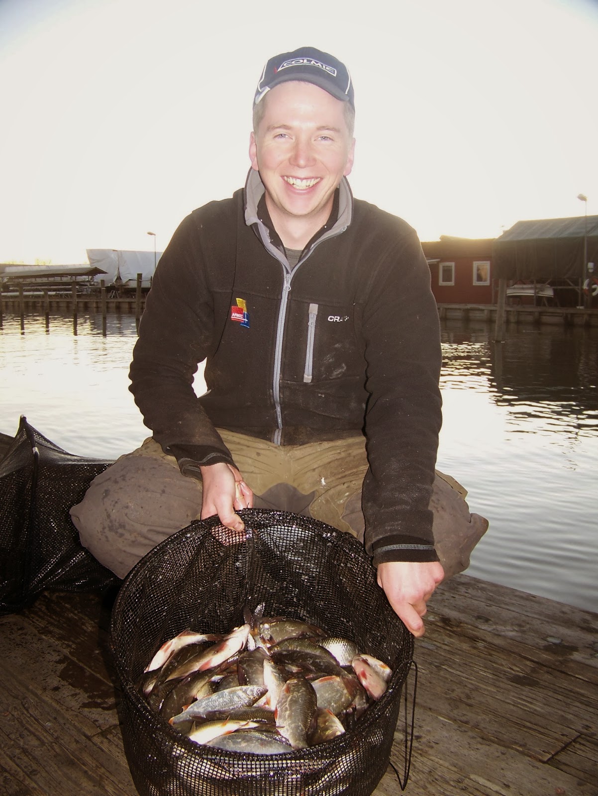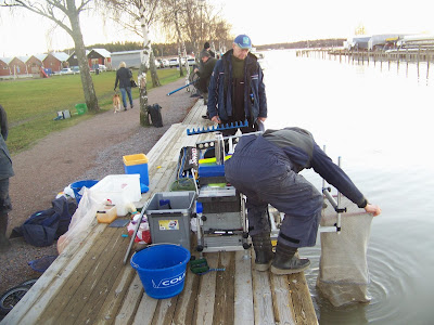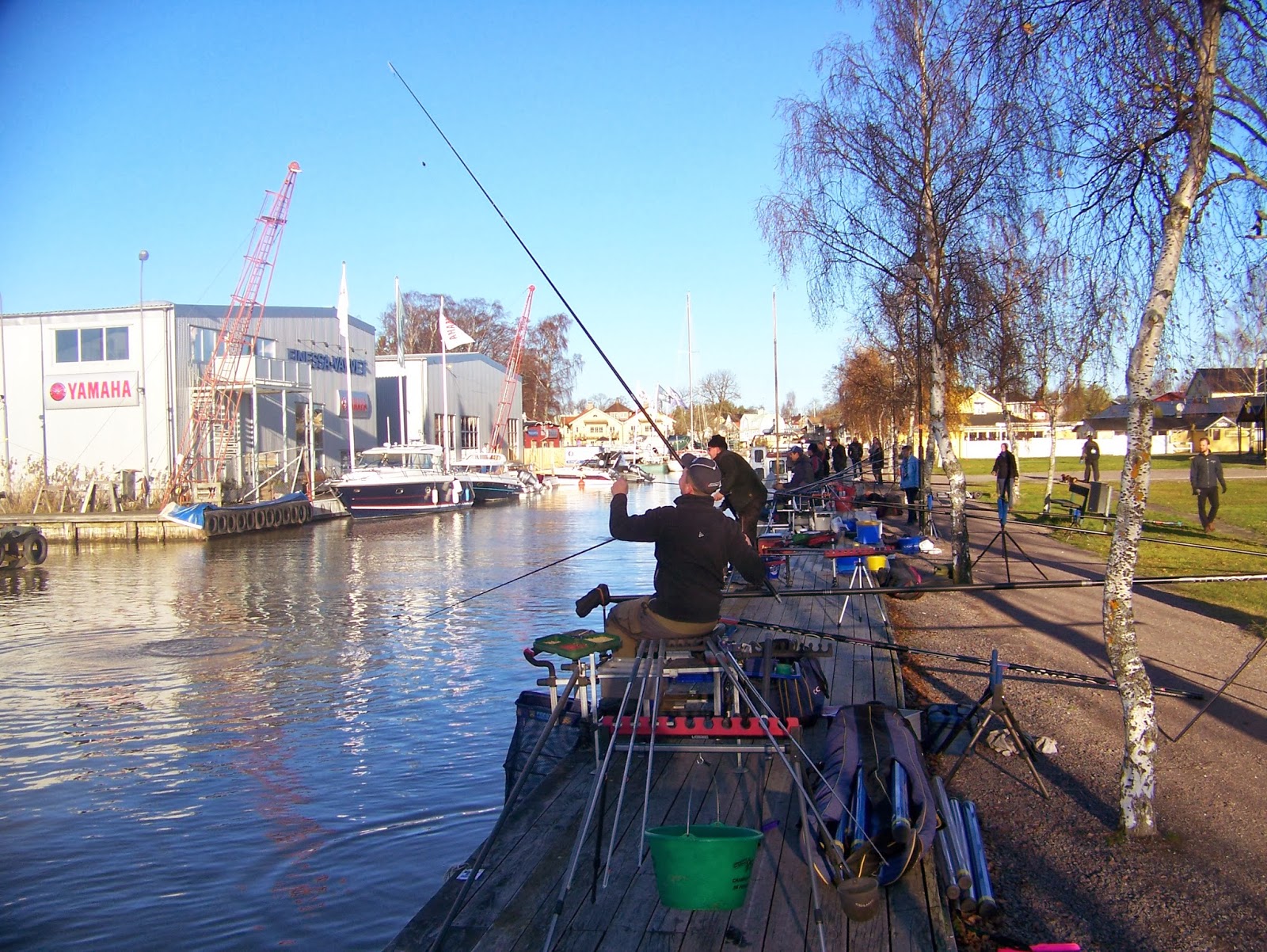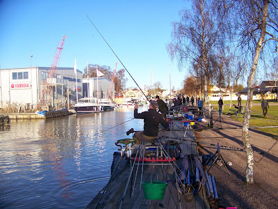 Glorious Trosa , the picture post card town on a Sunny Sunday with temperatures reaching a barmy 10 deg. C ! Thirteen anglers assembled for the expectant Roach-fest after previous weeks of practice fishing had realised a lot of kilos of Bjorkna , skimmer , Roach , Perch and Ide.