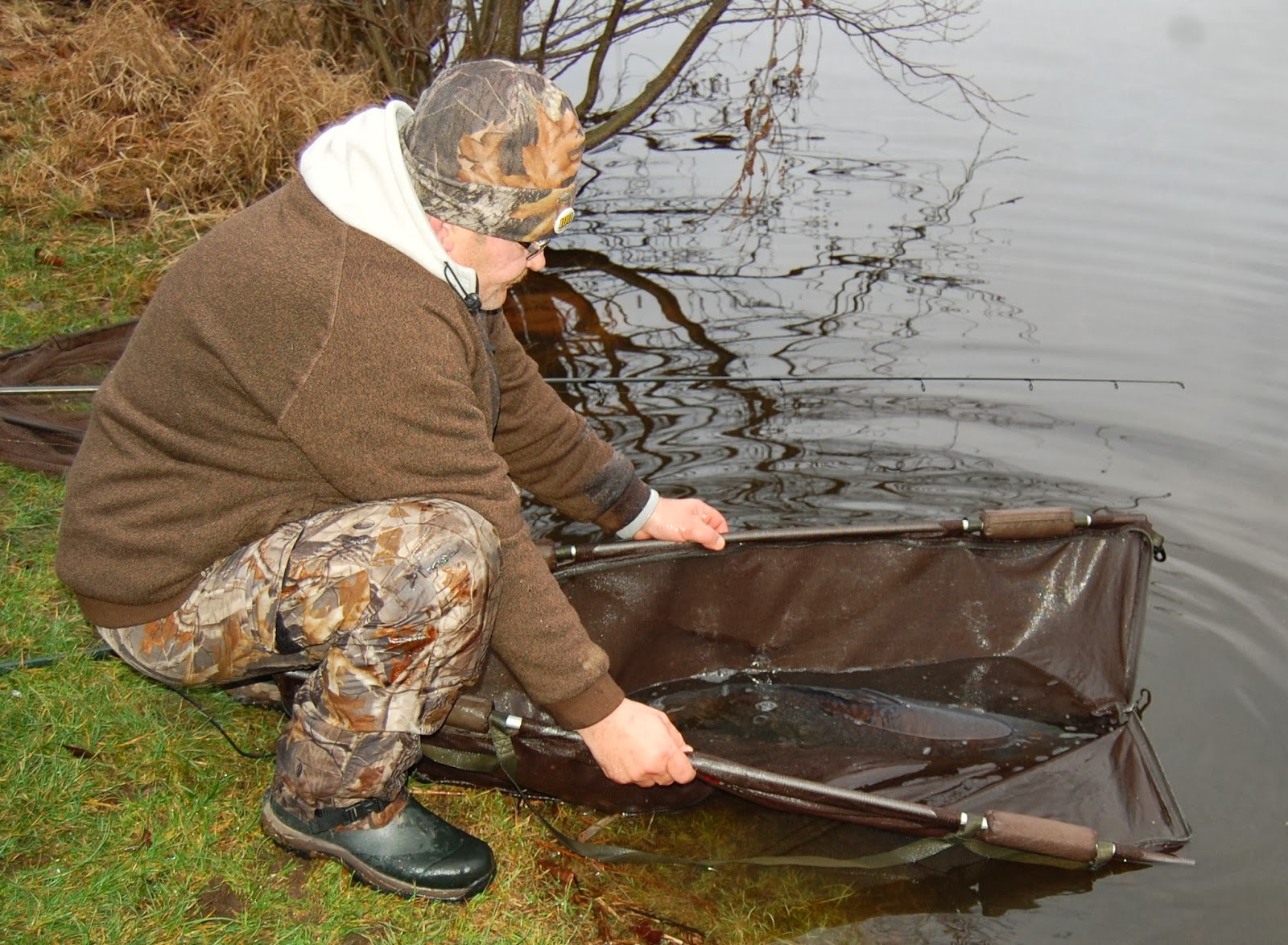 Jag fiskar i dag och i morgon bitti, sen blir det fyrverkeri och jag fiskar den första januari i dammen och sen jobbar jag den 2 och 3 januari och då mäskar jag morgon och kväll och sen återupptar jag fisket den 4 - 7 januari och det bör ge lite fisk på mattan.