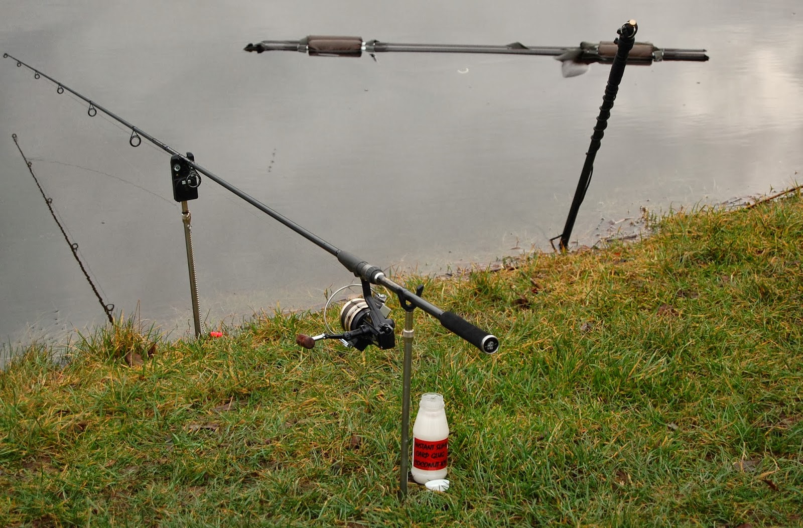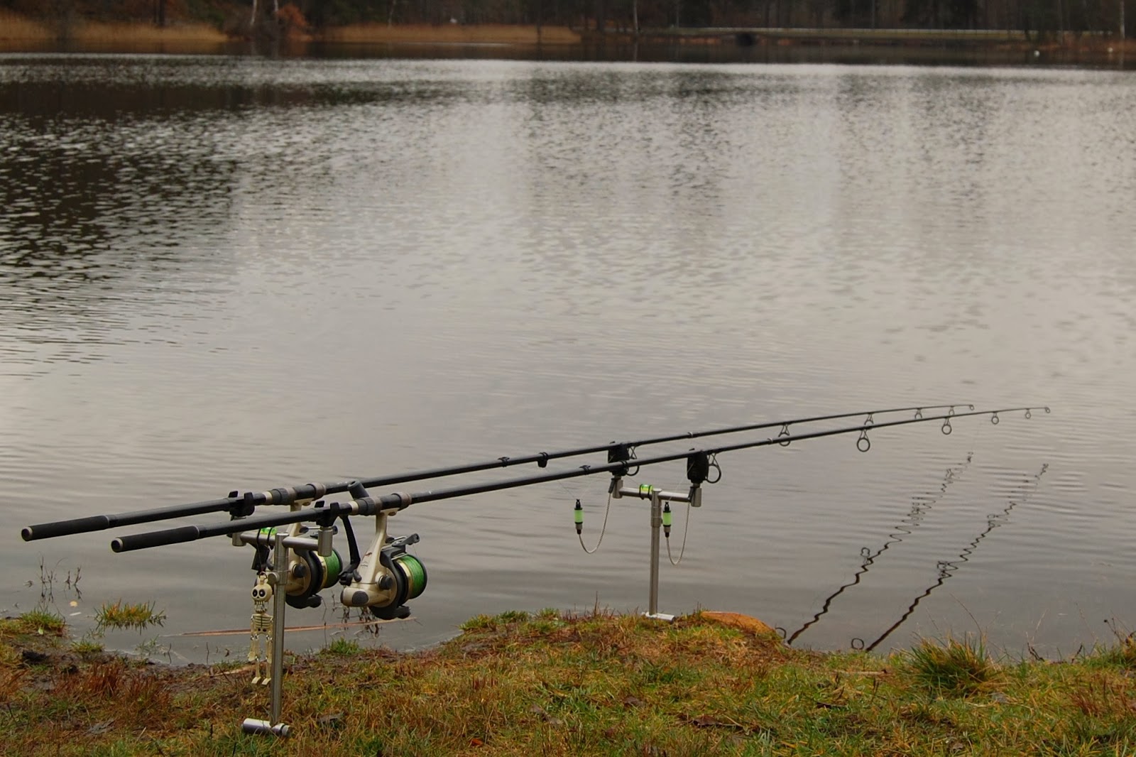 Väl framme gick det fort att slänga upp grejerna och sen få ut spöna på sina numera vana platser.Det gäller att hålla igång fisken och mäska, annars finns det en risk för att dem ställer sig och bli inaktiva och händer det, så blir det svårt.