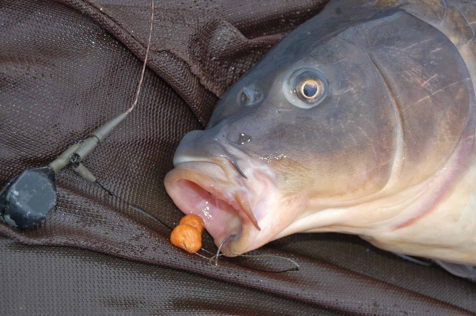 Den föll för två små deformerade bitar av Coconut Krill boilies och krokfästet kunde inte ha varit bättre.