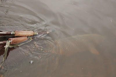 Alla tre karpar var lite desorienterade när man släppte tillbaka dem och jag vet inte varför, en spegelkarp som jag släppte, simmade in på badplatsen och strandade och jag fick hjälpa loss den och få den i rätt riktning.
