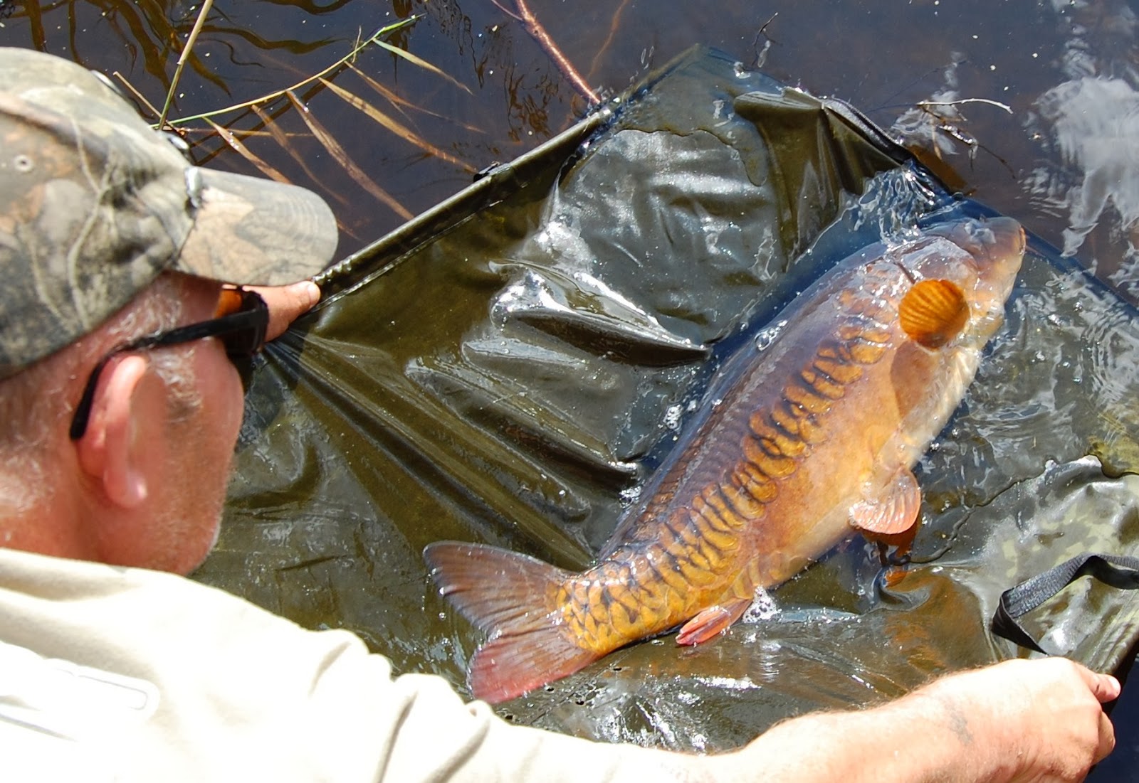 Här går en vacker sommar karp tillbaka till sin lilla dunkla värld, efter att varit lite för nyfiken på det där lilla extra, som doftade så gott och ...