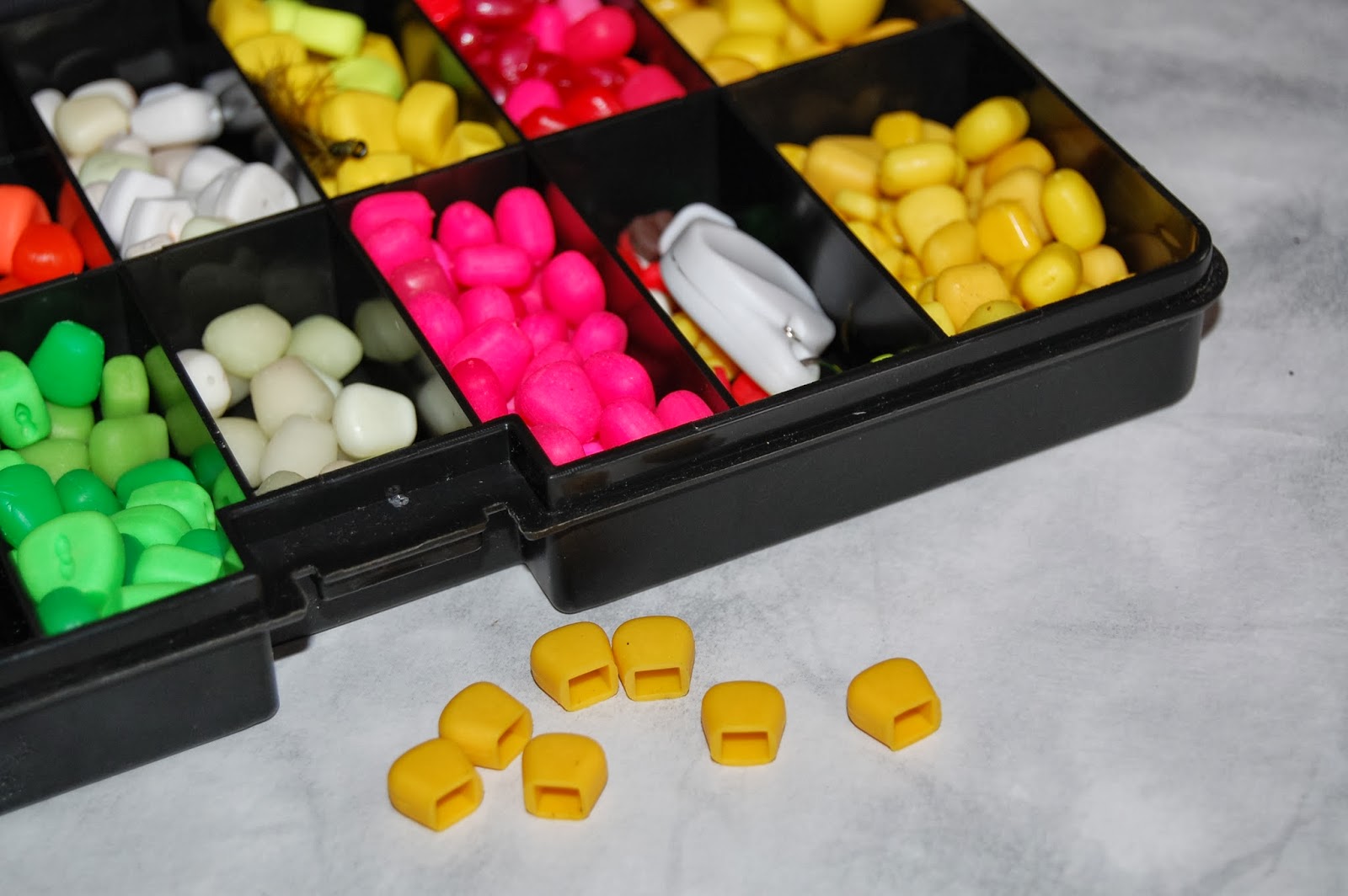 Två vanliga fakecorns och ett corn skin som är full av väldoftande paste, får oftast inte ligga orörd särskild länge om det finns karp på platsen och på detta sätt, håller pasten sig kvar betydligt längre, än om det hade varit helt öppet, fakecornen håller pasten på plats.