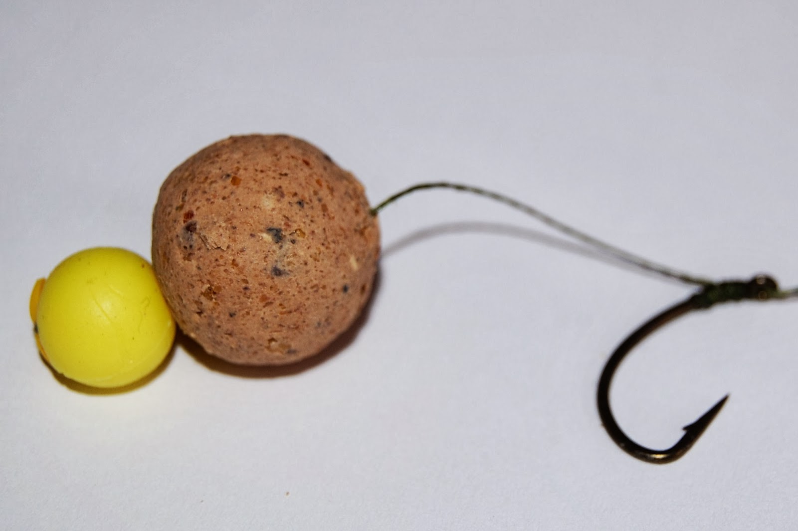En 10 mm fake pop - up boilie på toppen av en 15 mm sjunkande boilie ger karpen lite att reagera över i form av doft och synlighet.