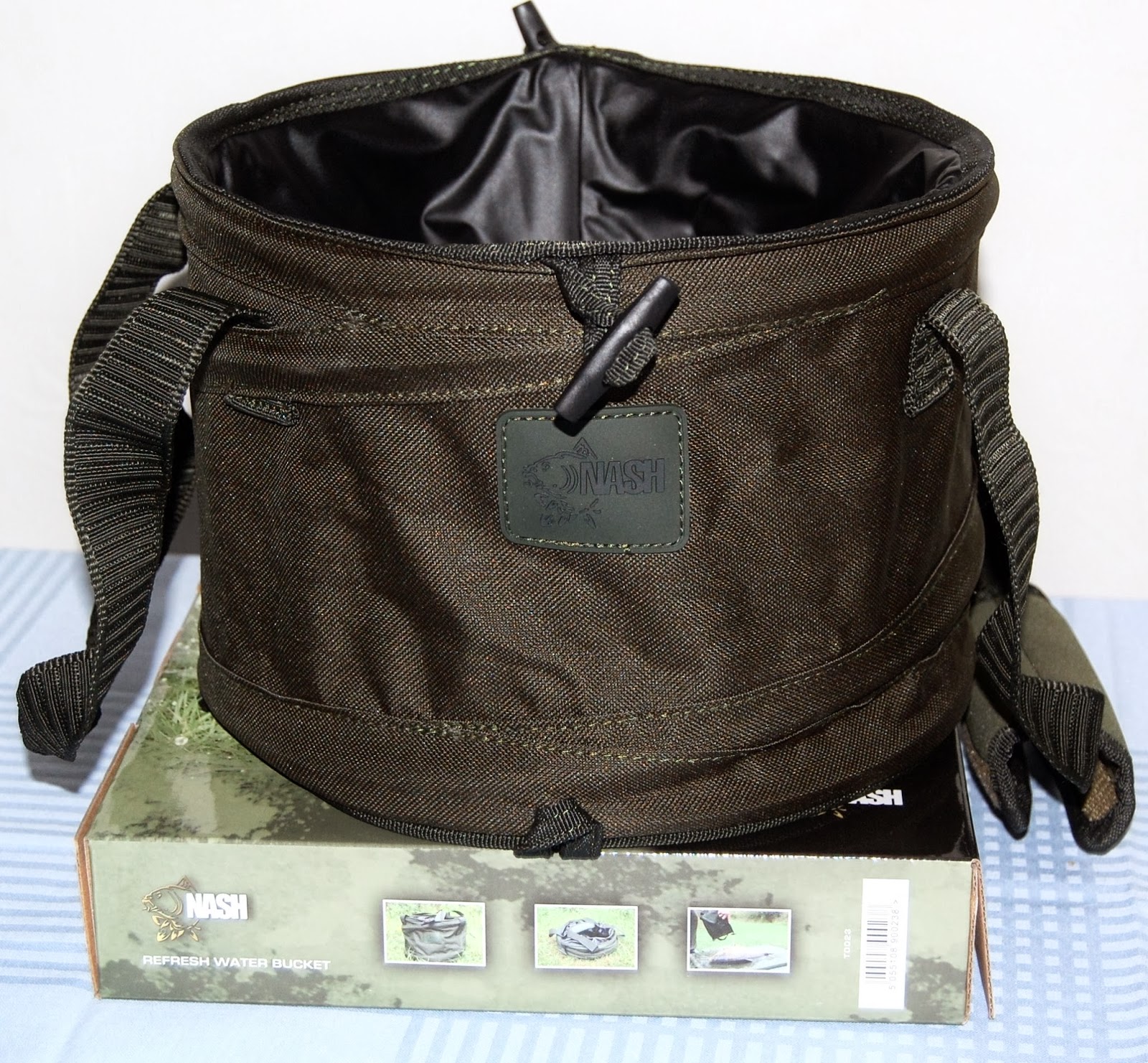 Jag har länge haft ett gott öga på denna ihop fällbara vattenhink från Nash och samtidigt, så hade jag tröttnat på min gamla "hink" som var en av Dynamite baits partikelburkar på 2,5 liter, som tog så mycket plats.