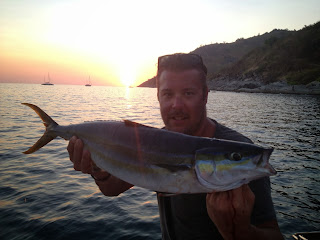 En riktigt trevlig dag på havet och med nya vänner här i Thailand. Jäkligt kul att lära sig lite nya metoder också. Fick se mycket flygfisk som flög säkert 40-50meter över ytan, delfiner, jagande GT:s och mycket annat i thailändska floran.