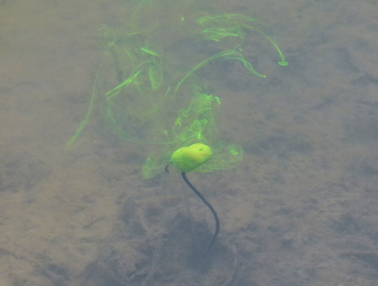 Jag lekte lite med doft - och färgämnet Goo senast jag fiskade och här har vi en bild på hur detta sprider sitt budskap, mer erfarenhet än detta, har jag tyvärr inte för ögonblicket, men det kommer i framtiden och då tittar vi mera på detta.
