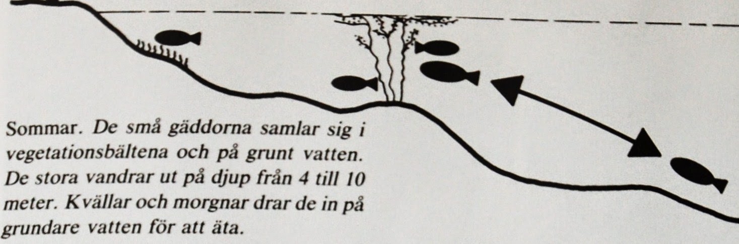 Sommargäddan håller sig ute på djupet och jagar på grunt vatten morgon och kväll och är ni ute hela dagen, så rekommenderar jag att ni håller er ute på djupa vatten under dagen och börjar och avslutar fiske nära land.