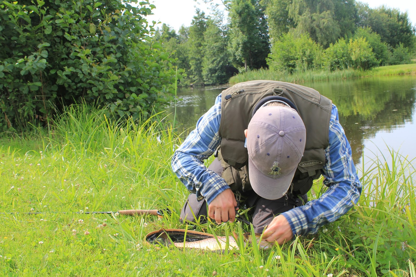 Sambon & jag var på plats i nordöstra Skåne tidigt på morgonen. Efter en långdragen arbetsvecka var jag ivrig att påbörja fisket och innan Sara ens hade valt ut dagens första fluga hade min N-fly #14 lurat en pigg liten rackare i den minsta dammen. Snabbt som blixten försvann fisken ner bland vegetationen och gjorde sig av med kroken enligt konstens alla regler. Nåja, det kommer nog fler chanser.