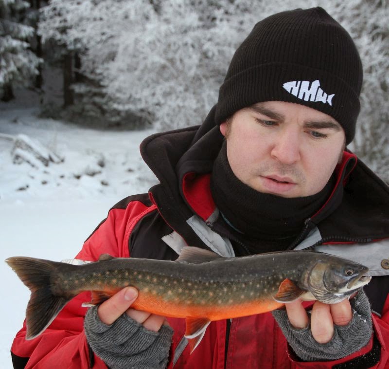 Ellers er det mye prospecting etter flere arter i ferskvann som står på planen fremover og igår var vi og testet det ene vannet. Artssammensetningen i denne sjøen er litt merkelig, så jeg var spent på om abborene ville ha balanse. Etter å ha fisket noen timer får jeg det første nappet, etter å ha borret nærmere 30 hull for å finne ut hvor strukturene var og hvor de dypere partiene befant seg.