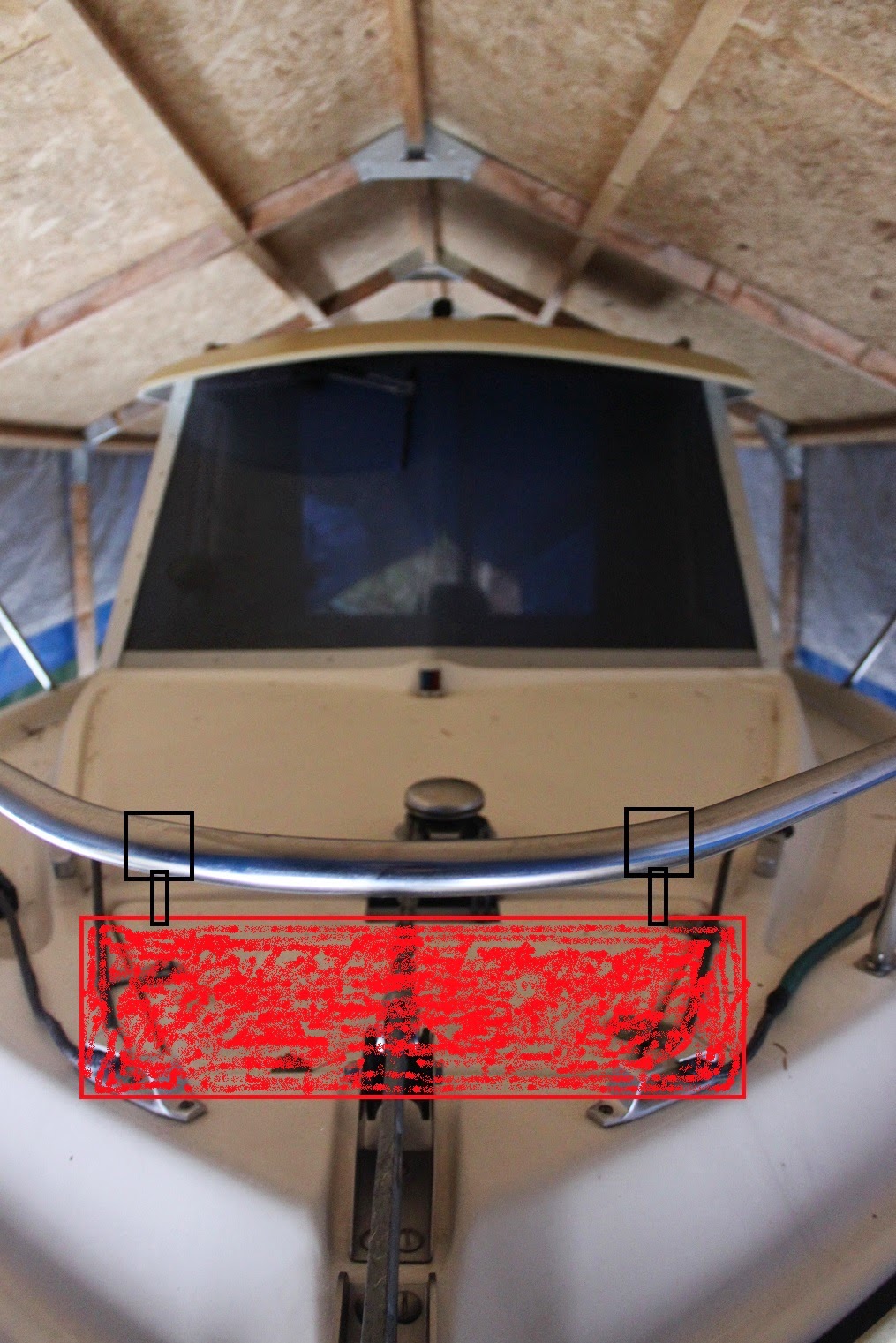 Tanken er derfor å montere lyskasteren så langt frem på båten jeg kommer, aller helst i underkant av pulpiten. (Rekkverket i front.) Av spesifikasjonene på lykten ser jeg at det er 15 centimeter mellom de to gjengede beina som lykten festes med, så neste utfordring blir å finne en løsning for å få dette festet. Pulpiten har 25 mm rør, men de er ovale så det må sikkert fores opp litt med gummi. Tanken er en form for brakett på rørene, som lykten igjen skrus fast i.