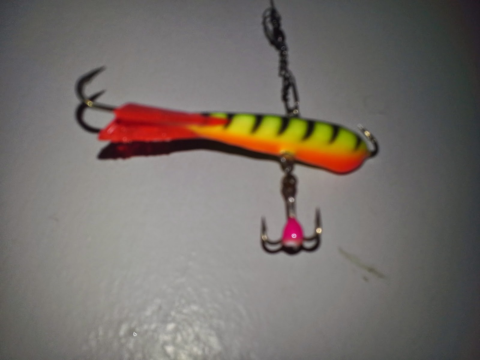 Som ni ser på bilden så är kroken under bytt till en färgkrok. Varför vi gör det är väl helt enkelt för att de flesta abborrar hugger just på denna. Handlar väl en del om avundsjuka men finns säkert en del andra orsaker. Färgen på balansen har många dagar inte så stor betydelse men blir ju så att man kör med det man tror på och tidigare fått fisk på. Men visst finns det dagar när man märker att endast en färg, storlek och modell är den ända rätta. Och förstås är det många gånger så att blänke eller mormyska skulle funka bättre men balansen är ju så mycket roligare