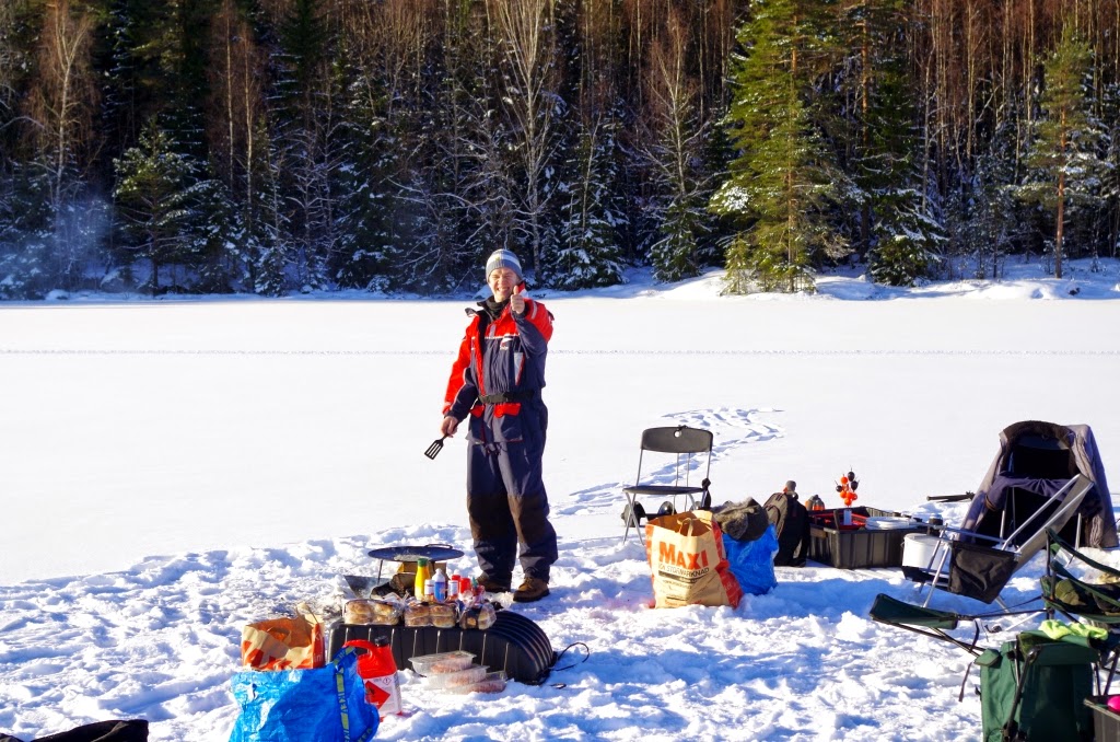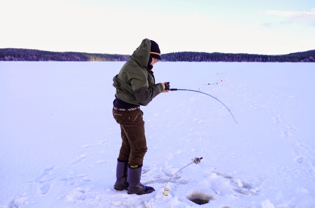 Att drilla fisk medan blåsten håller på att dra jackan över huvudet är inte så lätt. Inte heller att över huvudtaget se nappet. Tyvärr tappades fisken som var på den här mörten flera gånger.
