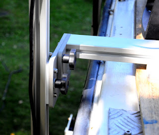 Två låsmuttrar sitter på baksidan. En låser stångens justering i höjd och en låser svängplattan.