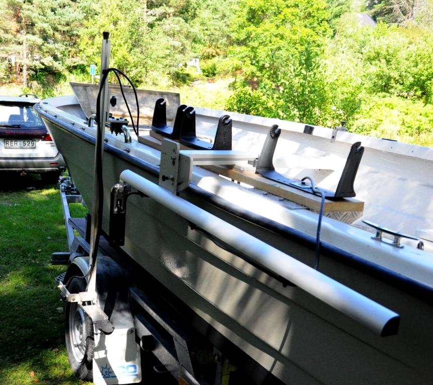 Givarhållaren viker sig snyggt utmed båtsidan.