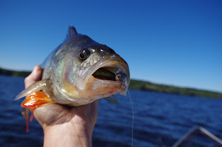 Målet infriades och jag fick både abborre och gös på spinnfisket. Å så ett gäng gäddor då förstås.