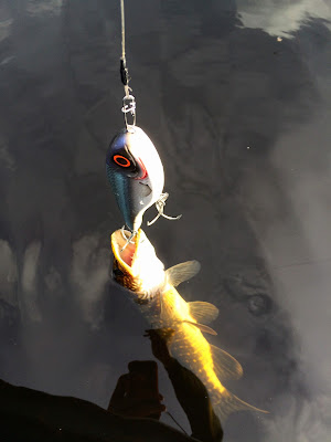 Igår drog jag till andra områden. Då solen och en alldeles för svag vind gjorde mig sällskap så var ursprungsplanen att leta stor abborre med hjälp av texas-rig bland näckrosorna. Det gick inte för sig. Jag vet inte om det berodde på lågtrycket eller mina bristande kunskaper men abborrarna ville inte alls.