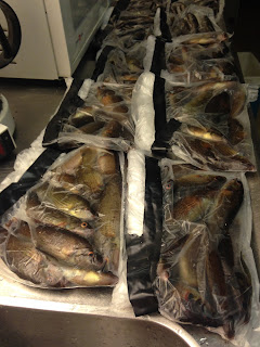 Väl hemma förpackades fisken och förpassades till frysens mörka grav.