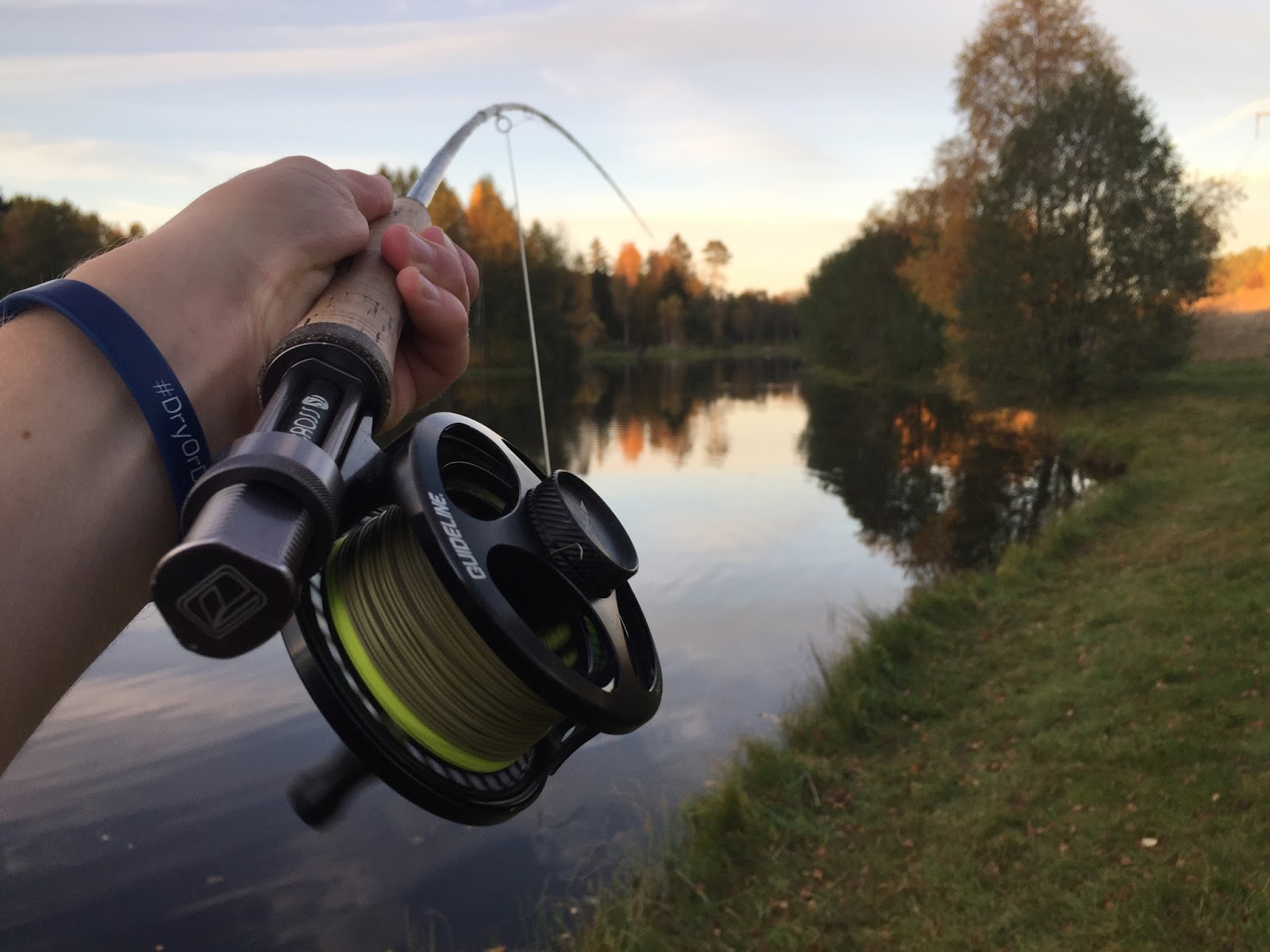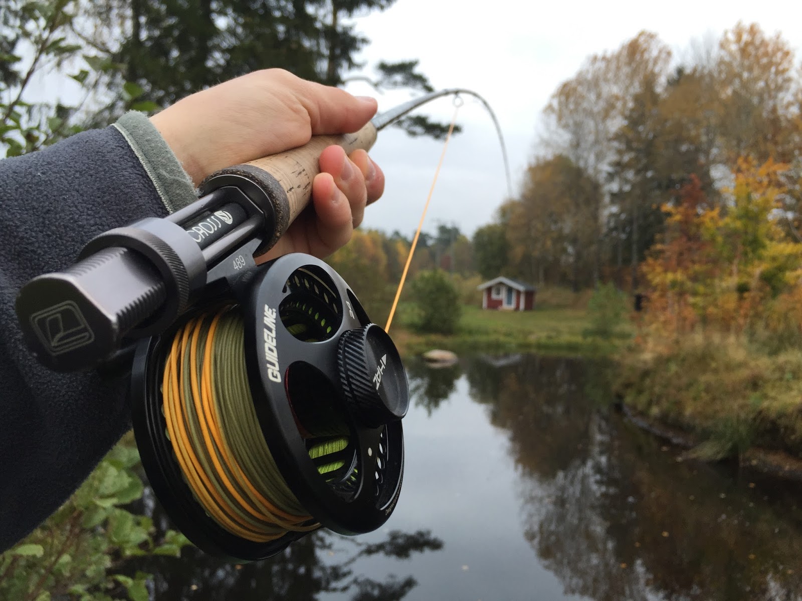 På plats i Trälshult träffade jag en entusiastisk Martin med flugspöt i högsta hugg. Tillsammans med familj & vänner passade han på att njuta av en underbar höstdag i sitt vackra Sunnedamm.