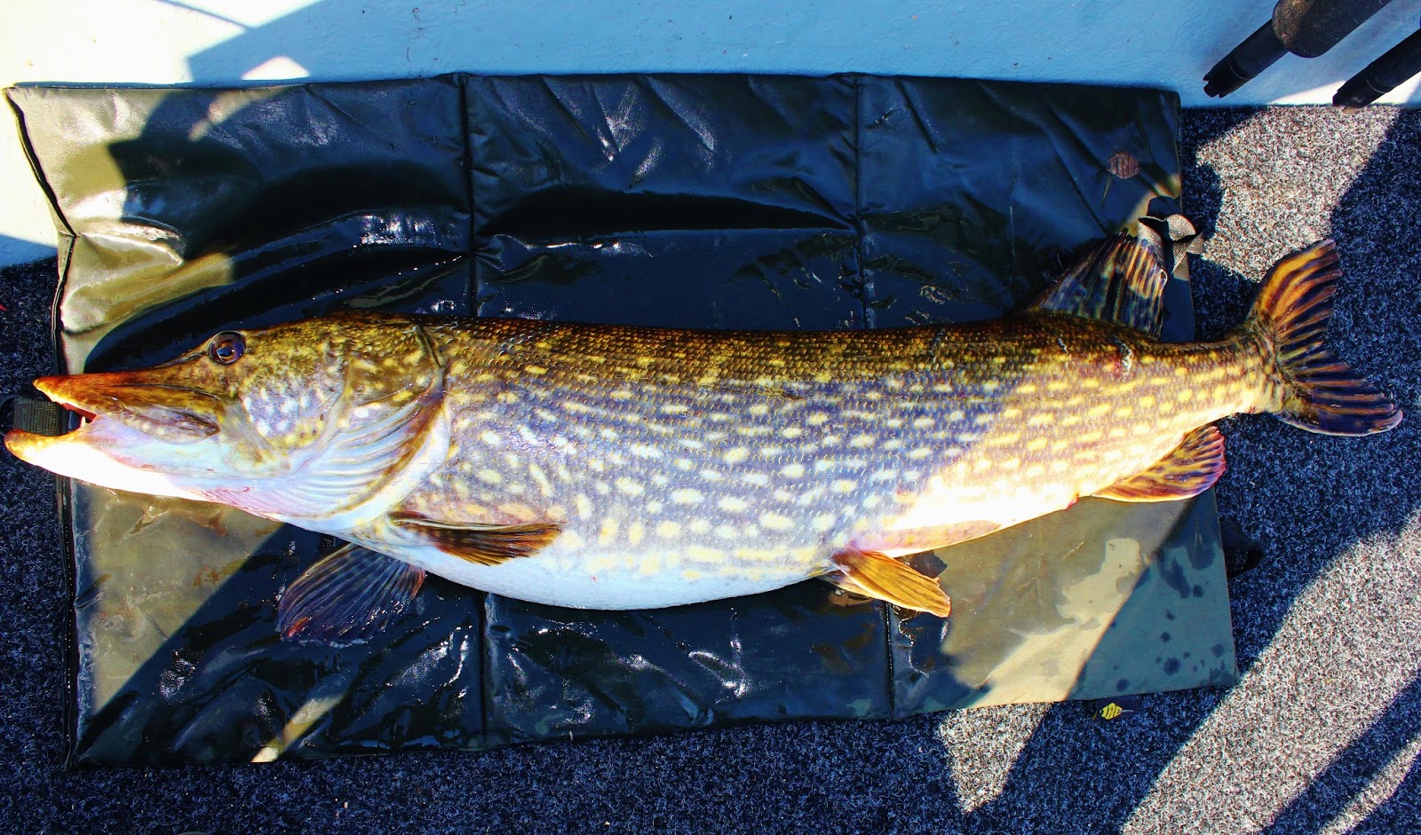 Efterlekssäsongen 2016 startade bra. Efter bara 10 minuters fiske häromkvällen högg det tag ordentligt över en 22 cm Westin Platypus, trollad på kort lina rakt bakom båten. Goa rusningar direkt och upp till ytan och välvde runt ordentligt. Såg direkt att den var stor. Blev lite krångligt ett tag när jag var själv i båten, men till slut kunde jag snärja håvgarnet runt en bråkig madam.