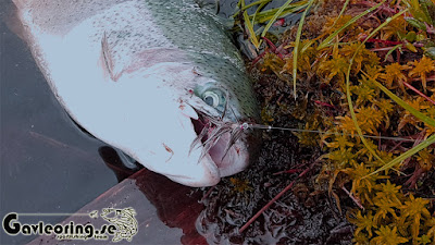Fisken var riktigt på G i blåsten,- och det nappade friskt. I dag var det färger i grått, grönt samt brunt som stod på matsedeln alla skrikiga färger ratades. Bäst gick idag de flugor som Eliot Almquist virkade åt mig inför Gotlandsresan tidigare i år. Tyvärr tog ett träd den ena flugan, och den andra drog en båge iväg med. Lär bli nån beställning inför höstfisket efter båge Elliot!