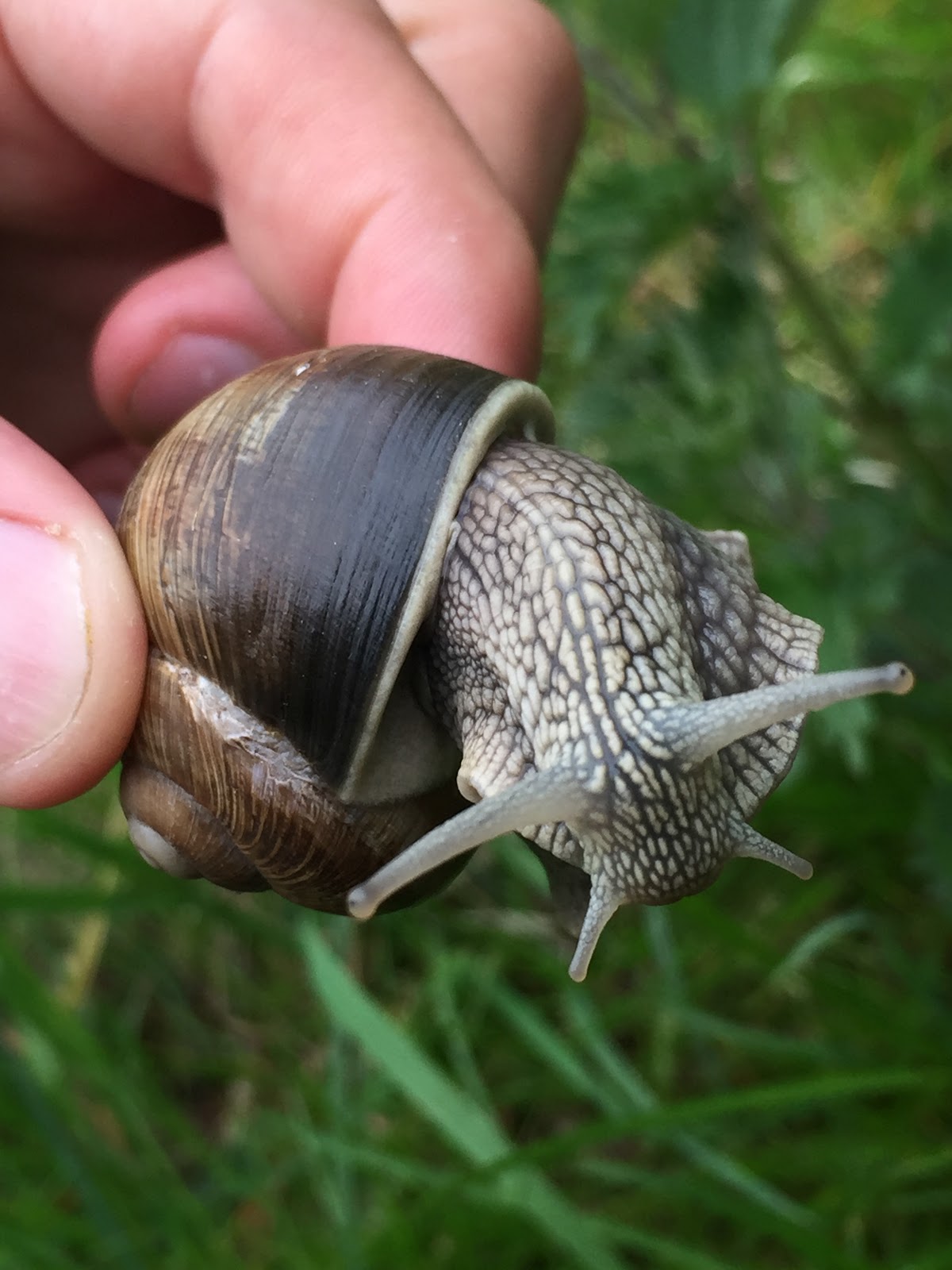 En nyfiken vinbergssnäcka som mer än gärna agerade modell.