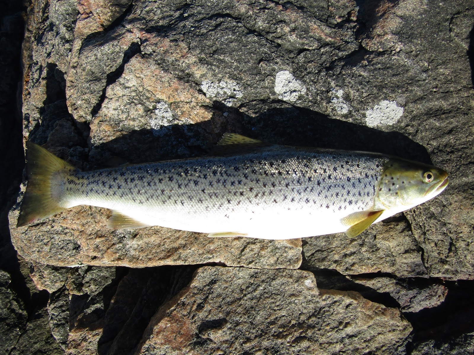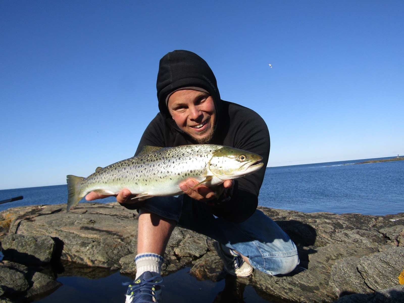 Fisken är fet och mäter 55 cm, vågen stannar på 1,65kg och är en av mina största havsöringar på västkusten! Denna blir mat, öring är min favoritfisk att äta!