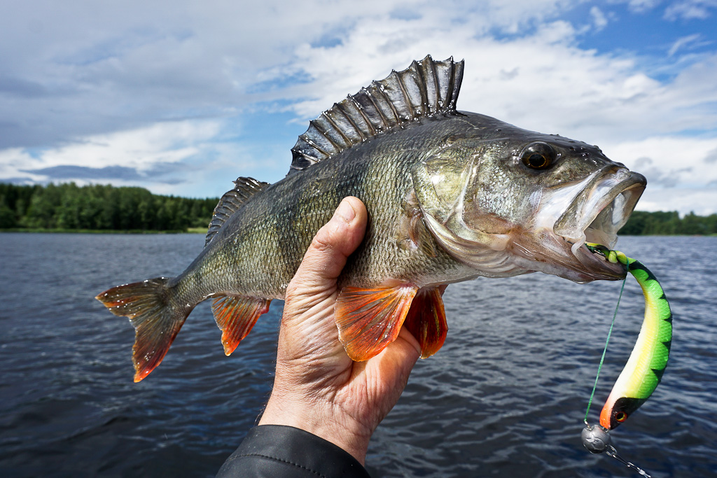 Abborren på bilden vägde 0,93 kg och jiggen är en Daiwa Duckfin 13 cm.