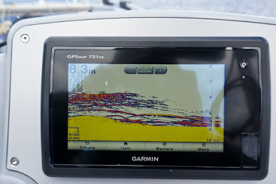 När förmiddagen gick över till middagstid upphörde regnet och solen bröt fram samtidigt som det började blåsa upp. Jiggfisket blev svårare i blåsten. Inte omöjligt men man tappar mycket av känslan och beteskontrollen tycker jag.