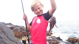 Vilmar rapporterar in 2 torskar och en fin rötsimpa på 250 gram, då han tog en kort fisketur när familjen var vid Kullaberg.